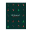 Na czarnym tle, niczym na niebie wigilijnym, rozrzucone są choinki, prezenty, lizaki i czapki z pomponami – małe symbole magii świąt, które wprowadzą Cię w radosny nastrój.