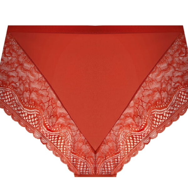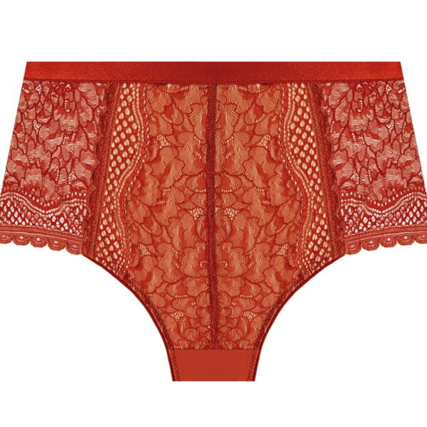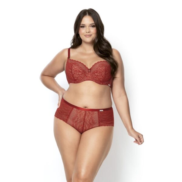 Piękne i zmysłowe figi w karmazynowym kolorze. Wykonane z delikatnej i wytrzymałej koronki. Wyższy stan zapewnia komfort noszenia. W takich figach z pewnością poczujesz się seksownie i kobieco.