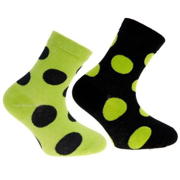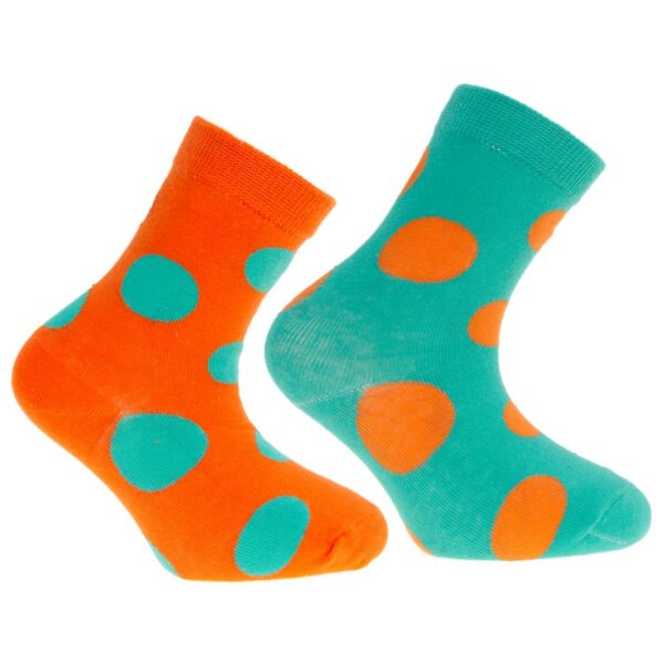 Fajne kolorowe skarpetki dziecięce. Wykonane z bawełny, z delikatnym ściągaczem. W zestawie 3 pary skarpet w kropki. Każda para składa się z dwóch 2 różnych skarpet. Będą idealne jako prezent np. na dzień chłopaka.