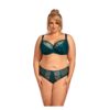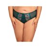 Eleganckie pełne figi Nessa no. 2 zachwycają lazurowym odcieniem i efektownym haftem inspirowanym pawim piórem. Mieniące się barwy szmaragdu, turkusu i granatu dodają im wyjątkowego, zmysłowego blasku. Wygodna, bawełniana wkładka w kroku zapewnia komfort noszenia, a staranne wykonanie w Polsce gwarantuje najwyższą jakość.