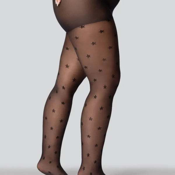 Świetne rajstopy plus size o grubości 30 den. Rajstopy świetnie prezentują się na nodze. Mają delikatny wzorek w gwiazdki, który urozmaici każdą stylizację.